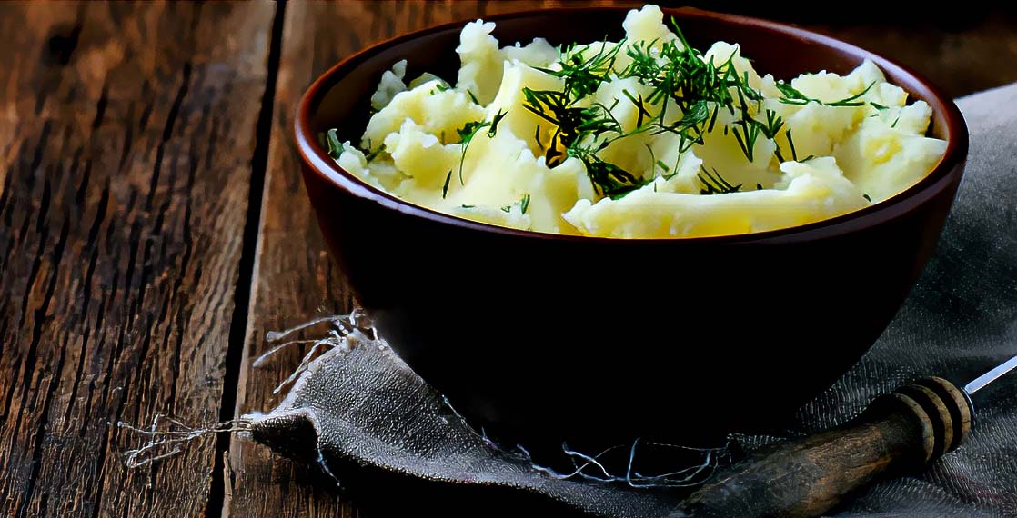 - Add olive oil, soymilk, a ¼ cup of broth, salt and pepper to the potatoes and mash well.